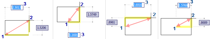 RECTANG 指令也可透過指定兩個對角點來建立矩形。但是,根據您想插入矩形的位置,您會發現指定兩個對角點可能並非永遠方便。AMRECTANG 指令提供了使用除兩個對角點之外的點來定義矩形的選項。