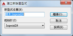 命名新詳圖型式。依預設,新的型式的名稱是「起始於」型式名稱,以「複本」做為字首。