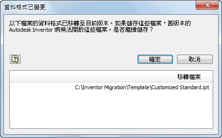 將目前的 Inventor 自訂樣板移轉至新版本的 Autodesk Inventor。