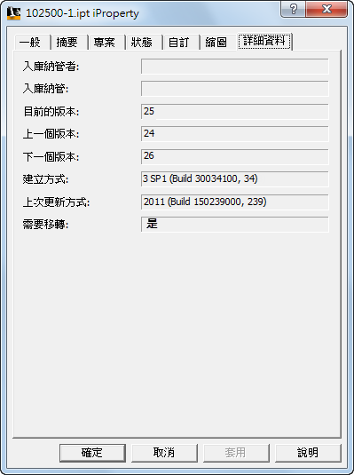 Inventor 可以使用 iProperty 檢查檔案移轉狀態。