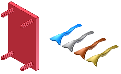 註: 採用「最佳化」或「相同」方法建立的陣列,會比採用「調整」方法建立的陣列計算得快。使用「調整」時,如果遇到平物面,陣列會終止。結果會產生大小和造型與原始特徵不同的特徵。