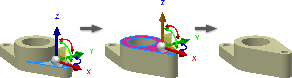 - 按一下與要鎖點至的面的方位一致的三向線性軸線或旋轉操控點。如果在三向軸上選取了線性或平面移動,則面會移動以對齊。如果選取了旋轉,則面會旋轉以對齊。