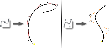 插補雲形線會通過點選的點。可使用點上的控點修改雲形線。