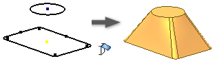 斷面混成特徵可以混成多個輪廓 (稱為剖面),並將其轉移為輪廓之間或零件面之間的平滑造型。剖面可能是 2D 草圖或 3D 草圖中的曲線、模型邊或面迴路。您可以使用軌跡 (或中心線和點對映) 來控制造型並防止扭轉。對於開放的斷面混成,一個或兩個終止剖面可能是尖銳點或相切點。斷面混成可以產生實體或曲面本體。