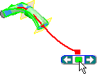 使用「變動半徑圓角」,點選邊上的點並定義半徑值。類似地,使用「區域斷面混成」點選中心線上的點。定義一個剖面區域,或在可以相應地放大和縮小斷面混成的點處定義一個比例係數。若要為斷面混成套用美學變更,請使用「區域斷面混成」。