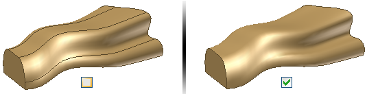 有時,斷面混成表示複雜的有機造型,比如消費產品中的某些造型。此類邊通常是不需要的,尤其是在 G1 相切面或 G2 平滑面之間。如有可能,若要移除相切面或平滑面之間不需要的邊,請使用「合併相切面」選項。