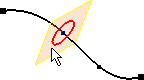 註: 選取點時,請勿選取貼附點的幾何圖形。在此影像中,我們點選雲形線而非端點: