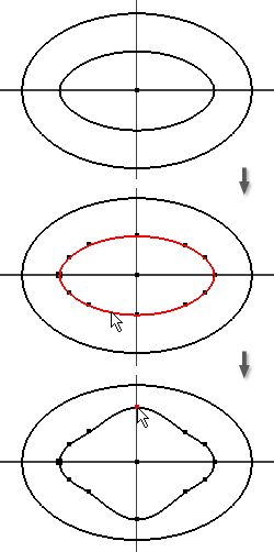 偏移橢圓會採用加入的擬合點和多個造型點轉換為非關聯式雲形線。您可以單獨對其進行控制。