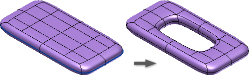 在自由形式模型中,橋接本體或建立孔。使用「橋接」編輯自由形式本體,您可透過指定要橋接的面來進行平滑連接。