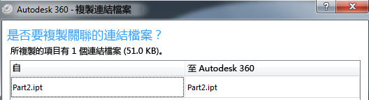 當您將檔案儲存至 Autodesk 360 時,會加入目前檔案和所有從屬檔案。