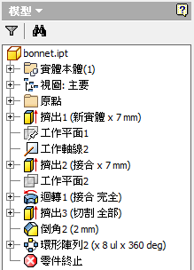 無法在被消耗特徵之間撤回零件終止標識而不共用 (如擠出特徵及其消耗的草圖)。