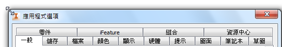 選取「應用程式選項」對話方塊的任意角點即可重調大小。