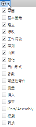有數個指令已從主面板移至子面板,或面板上的下拉式清單。例如,在零件檔 (.ipt) 中,「3D 模型」頁籤上的「修改」面板現在簡化為依預設顯示較少的指令。其他修改指令被移至下拉式功能表或「修改」的展開面板: