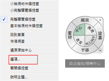 若要存取此對話方塊,請先確定 SteeringWheel 處於作用中,然後按一下滑鼠右鍵並向下捲動至「選項」。