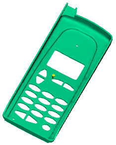 如果您不想使用「入門」自學課程中的相同專案,則需要建立一個新專案並匯入 cellphone.stl 自學課程檔案。您可以在「tutorial」資料夾 (如 C:\Program Files\Autodesk\Simulation Moldflow Adviser xxxx \tutorial ,其中 xxxx 是軟體版本) 中找到它。請確保刪除模型上的所有既有澆口位置。