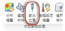 註: 射出位置的座標可能與您輸入的值不完全一致,卻是零件表面上最接近所輸入值的位置。