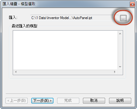 按一下「匯入精靈」對話方塊上的省略號按鈕,以尋找要匯入的檔案。