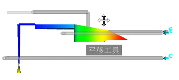 「平移」工具可讓您相對於模型窗格的中心移動模型。
