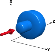計算的最大鎖模力是射壓與零件投影面積的函數。投影面積是投影到 XY 平面上的模型的面積。為使鎖模力計算結果正確,必須以沿 Z 軸方向施加鎖模力的方式定位模型,如下圖所示。