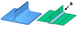 當氣體通道剖面的寬厚 (W 與 T) 比小於 4 時,如下圖所示,應將氣體通道塑型為「零件樑」類型的曲線,且具有適當的剖面尺寸。樑能夠更好地說明熱穿過寬厚比小於 4:1 之厚肋邊緣傳導的效果。此傳導對冷卻及凝固層預測影響較大,因此它在定義氣體滲透路線方面是一個重要因素。