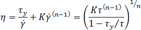 Herschel-Bulkley-WLF 黏度模型可用於展示降伏應力的熱固性材料。此模型可用於「反應式成型」分析、「微晶片封裝」分析或「覆晶充填封裝」分析。