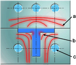 若符合這些條件,模具表面的溫度取決於從金屬到冷卻劑/金屬介面的熱傳導。這是金屬傳導率與模具幾何圖形的函數。