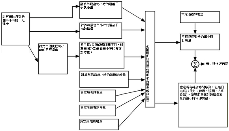冷卻荷載計算必須處理建築熱轉移程序中繼承的兩次延遲效果: