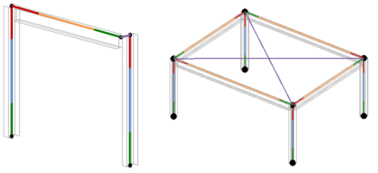 同樣地,跨越多根柱的樑可以容納解析連結。在下圖中,所有柱不論是否接合,皆可與樑有解析連結。