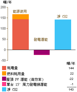 淨 CO2 | 專案之能源消耗的總 CO2 排放量,減去發電潛能。 |