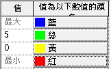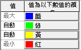 按一下值欄位的顏色來在值顏色對中指定不同的顏色。