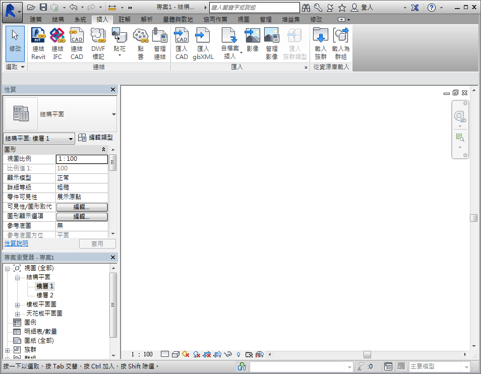 繪圖區域顯示目前專案的視圖 (以及圖紙和明細表)。每次開啟專案中的某個視圖時,該視圖會顯示於其他開啟視圖的最上層繪圖區域。