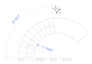 - 建立梯段時,以逆時鐘或順時鐘方向移動游標來指定旋轉方向。