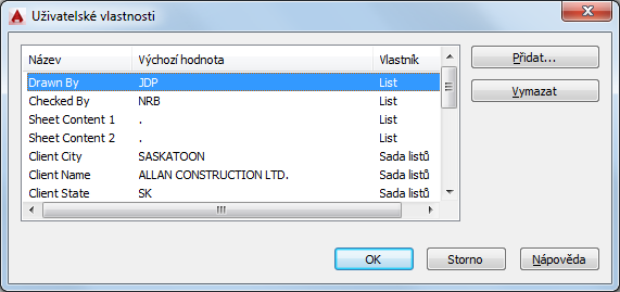 Nabízí seznam uživatelských vlastností asociovaných s aktuální sadou listů.