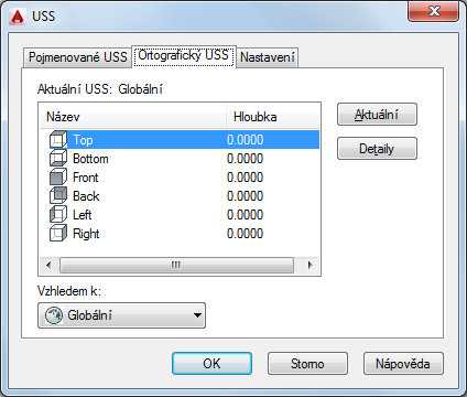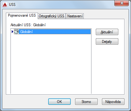 Vypíše definované USS v aktuálním výkresu. Aktuální USS je v seznamu označen malým ukazatelem vedle názvu.