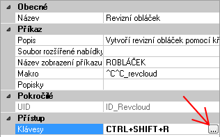 4. V podokně Vlastnosti klikněte na pole Klávesy a potom kliknutím na tlačítko [] otevřete dialog Klávesové zkratky.