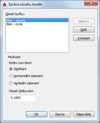 Data buňky tabulky mohou obsahovat text a několik bloků.
