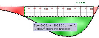 Jedná se o číslo staničení ve spádovém bodu pro objem nad rovnovážnou linií.
