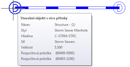 Dále si podrobně projděte: Zopakujte tento postup u dalších stavebních objektů v síti a přiřaďte kódy rozpočtových položek, které jsou vhodné pro jímky, šachty a výtoková čela.
