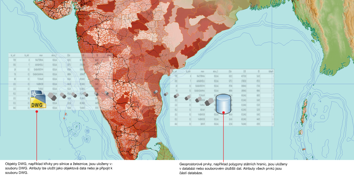 Kombinace dat ze souboru výkresu a úložišť geoprostorových dat