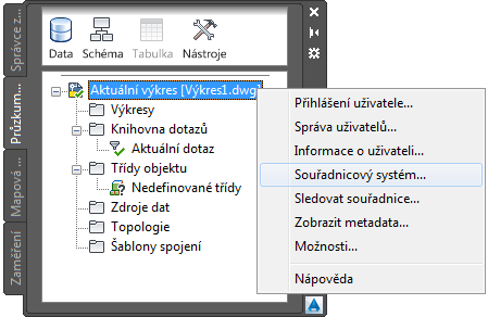 Práce s EPSG a skutečnými souřadnicovými systémy Mentor nebo definice vlastních. Používat lze například nástroje transformace, transformace s plochou a sledování souřadnic, a přesně tak georeferencovat data návrhu aplikace AutoCAD.