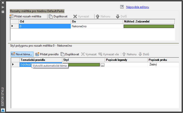 Kliknutím na Nové téma definujte téma pro hladinu Parcely.
