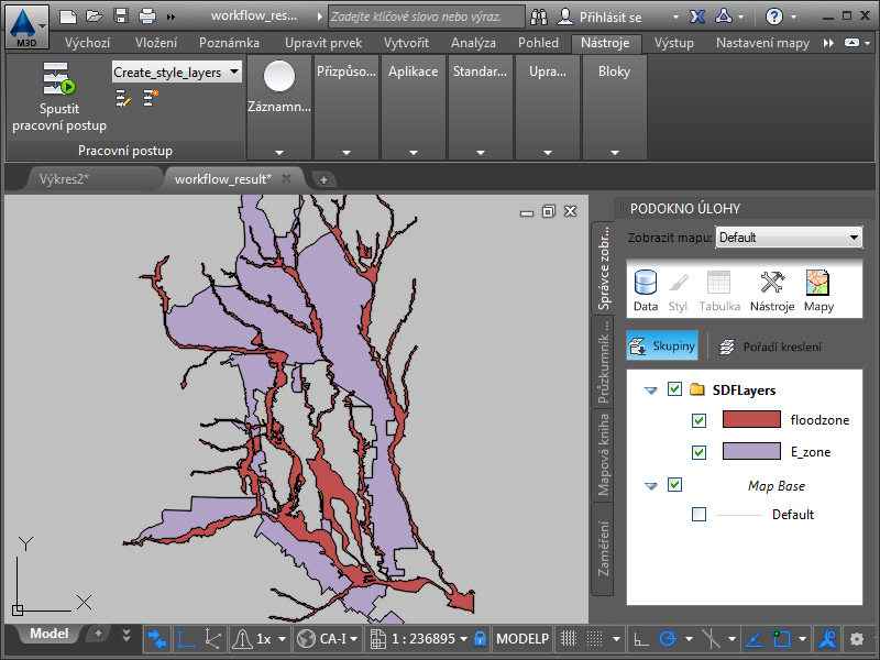 Hladiny jsou přidány do mapy stejně jako do nové skupiny Správce zobrazení. Zobrazí se výzva k zadání názvu a umístění souboru DWG. Soubory .layer se uloží do umístění zadaného v aktivitě.