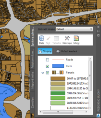 | Vytvářejte témata změnou stylu na základě atributu prvku, například měňte barvu pozemků podle jejich rozlohy. |