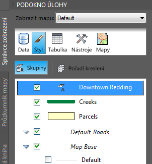 V tomto cvičení nastavíte styl hladiny textu – nastavíte tučné písmo a změníte jeho barvu. Dialog Textová hladina stylu obsahuje mnoho nastavení. Většina z nich je spojena se zdrojem dat prvků a neměli byste je měnit.