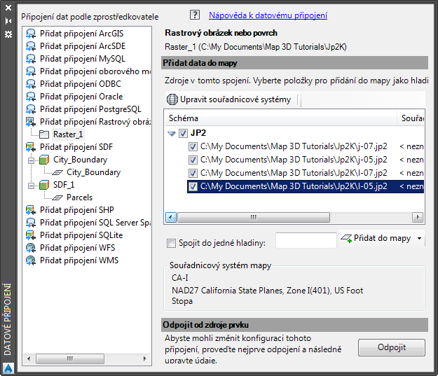 Připojit k datům. Složka obsahuje několik souborů JPEG 2000, z nichž každý pokrývá malou část města Redding. Nevyberou se automaticky, protože existuje více položek a vy možná nebudete požadovat všechny.