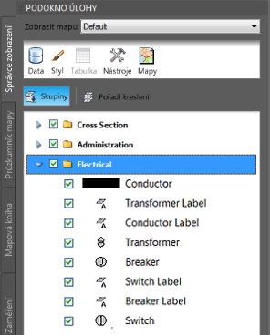 Uspořádejte objekty ve výkresu podle reálných prvků, které reprezentují (například silnice, parcely, kabely nebo potrubí).