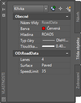 Zobrazí se karta Třída objektu na paletě Vlastnosti asociované se třídou vybraného objektu.