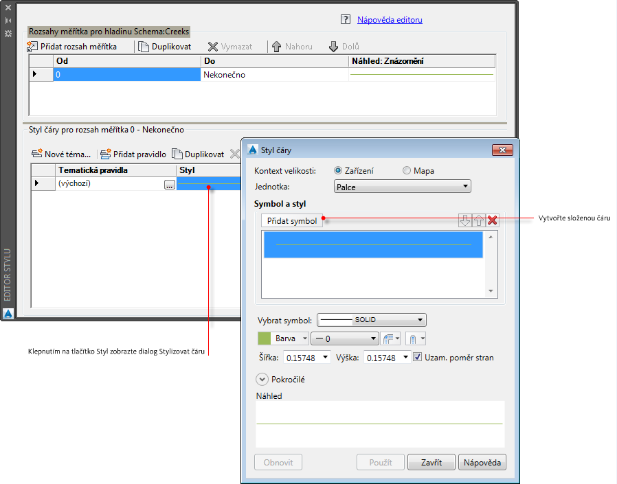 Definujte jiný rozsah měřítka a zadejte pro něj styl plné čáry.