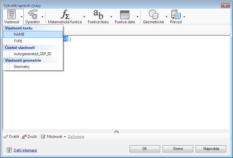 7. Vyberte druhou položku ([Textová vlastnost]) a klikněte na možnost Zadat vlastnost. Klikněte na možnost Vlastnost a vyberte textovou vlastnost NAME.