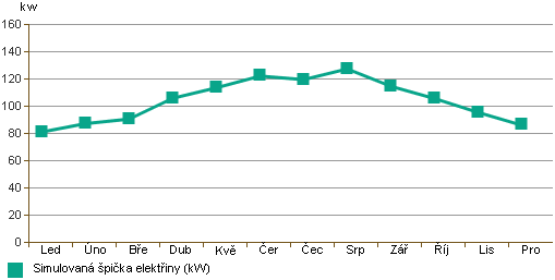 Při prohlížení souboru energetické analýzy v dialogu Výsledky a porovnání tento graf zobrazuje odhadovaný špičkový odběr elektrické energie za měsíc.